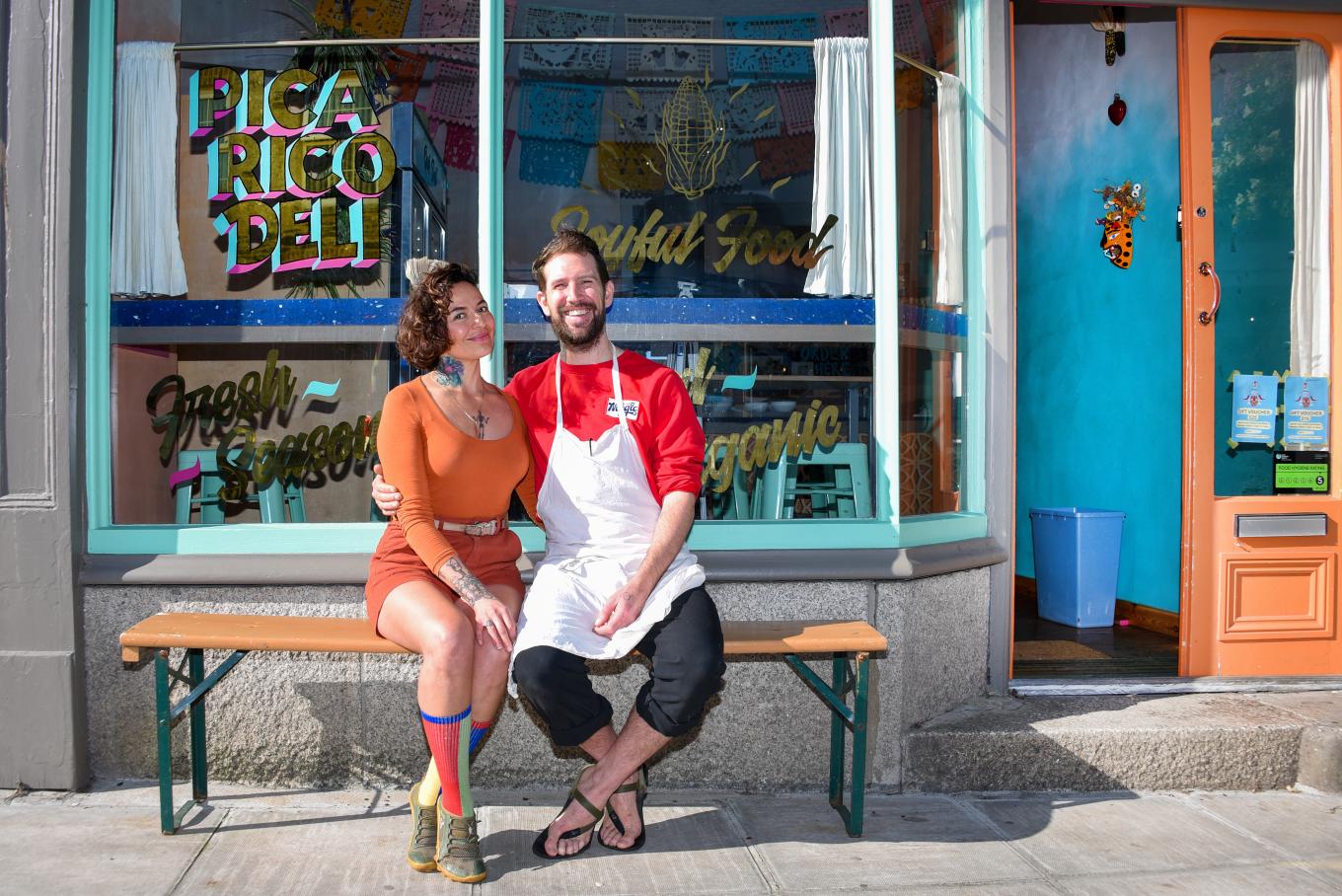 Francis Pipe and Jennifer Herrera, founders of Pica Rico Deli in Cornwall. The couple have fused Mexican flavours with Cornish produce to create a street food inspired venue in the heart of a Cornish town.